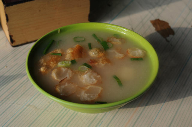 味增湯先上,瞧那漂浮油條的誘惑,湯頭屬甜味增口味,粽還未上就喝完捏。