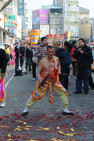 傳統當然也少不乩童,這位剛拿釘鈸敲頭,已經噴血捏(18禁),仍屹立著不