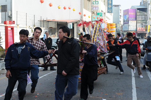但最讓我驚艷的抬神轎,八人抬轎,隨著神轎搖擺,八人舞步相同,神情肅