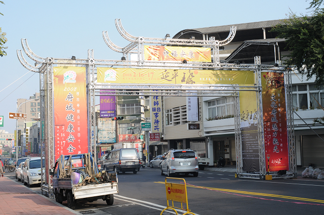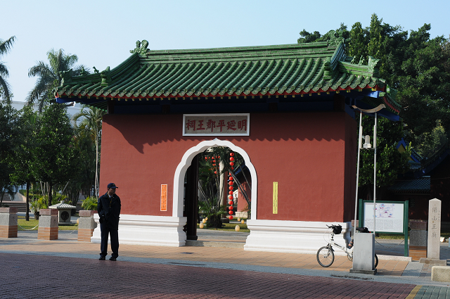沿著人行道輕踱,饒富創意的城門型鋼架宣傳著延平王祭的活動,那這裡就