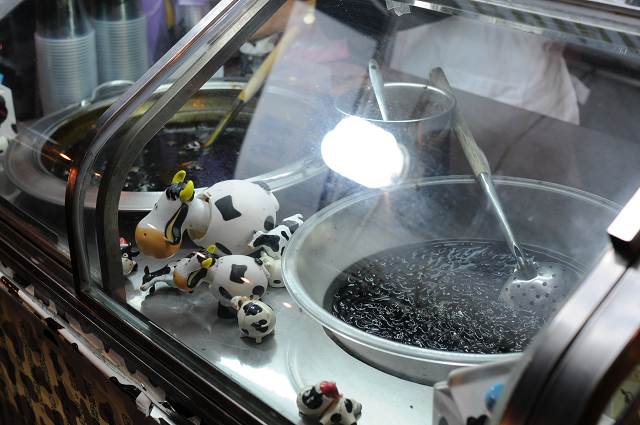 青蛙蛋蛋+鮮奶,不同於士林的下蛋喔,他們粉圓是黑糖粉圓,加上100%的林鳳
