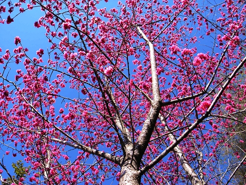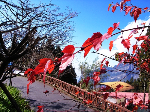 楓紅很多,只是奇怪的是楓樹伴著櫻樹