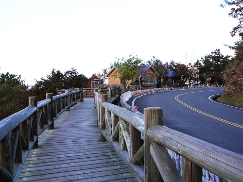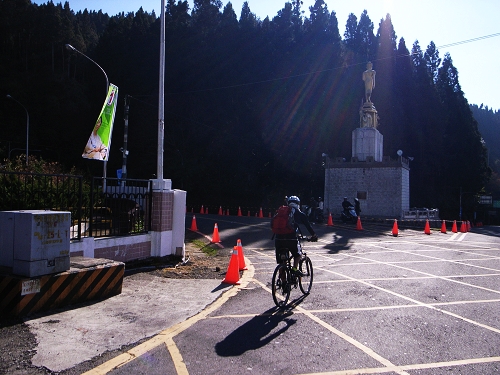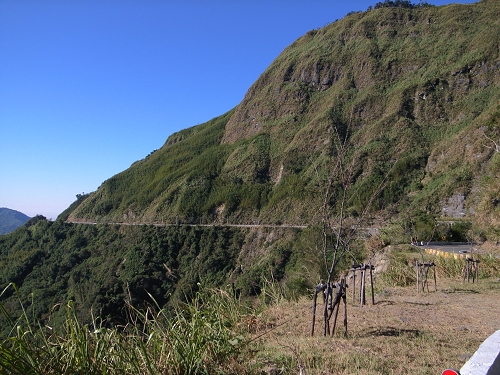 再次進入緩坡時發現路邊怎麼有著紅紅滴小人間隔排列
